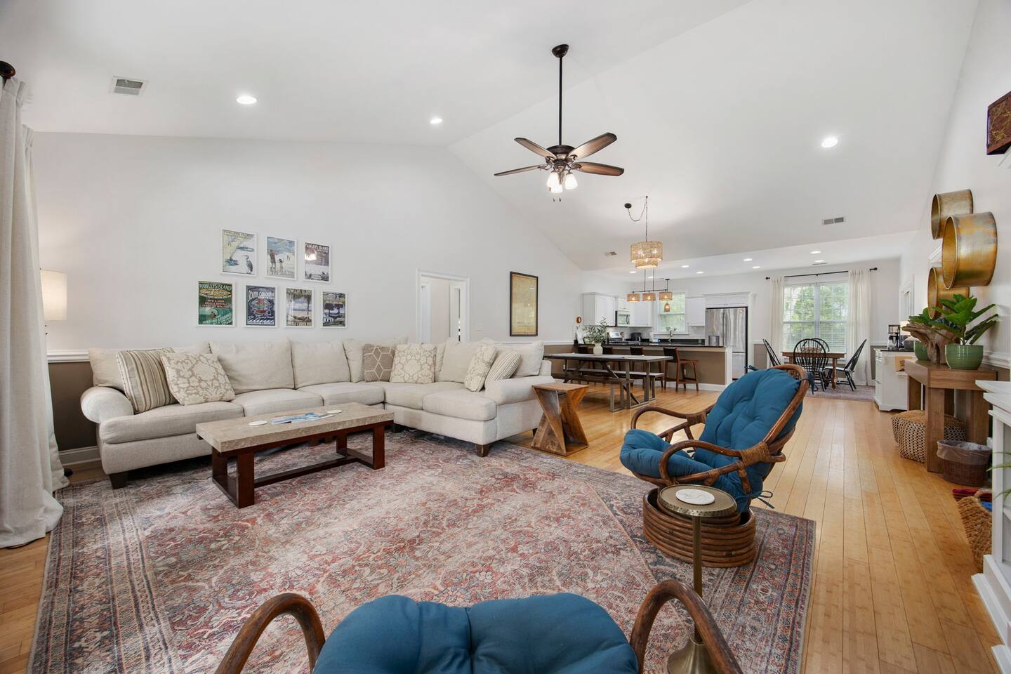 The space ☆The Space at a Glance☆ • Indoor Living: Accommodates up to 8 guests. • Outdoor Living: Fully enclosed backyard perfect for pets with a private patio overlooking the neighborhood pond and fire pit for stargazing. • Prime Location: There are 10 golf courses directly in Pawleys Island and another 14 courses within 20 miles top-tier courses like Caledonia and True Blue. This home is also minutes from the beach and your stay includes a complimentary pass to Huntington State Beach Park. • Pet Friendly: Welcomes one dog (up to 55lbs) to join the family vacation – water & food bowls includes – plus treats! • Guest Perks: 2 Bicycles provided for local exploration, beach towels and chairs for relaxing by the ocean and private driveway with parking for up to 4 vehicles. ________________________________________ ☆Expansive & Light-Filled Family Room☆ Step into the heart of the home, where soaring high vaulted ceilings and an abundance of natural light create a bright, airy atmosphere. This expansive open-concept space is designed for togetherness and relaxation: • Ultimate Comfort: Sink into the large, plush sectional couch, perfect for movie marathons on the flat-screen TV equipped with your favorite streaming services. • Gourmet Connection: The room flows seamlessly into a well-equipped open kitchen, allowing the chef to stay part of the conversation. The kitchen has all the comforts of home including lots of cabinet space to store your groceries, a full size refrigerator with ice maker, gas oven and stove, microwave, dishwasher, toaster, airfryer, blender. Also included are pots, pans, baking dishes, utensils, and an outdoor grill. • Dining & Games: Gather around the large dining table with seating for 6 plus seating for 4 at the kitchen counter, an ideal spot for long family meals or competitive board game nights. • Start Your Mornings Right: Enjoy the dedicated coffee bar, with drip pot and ground coffee included, perfect for fueling up before a day at the beach or on the golf course. • Fully Equipped Laundry Room: Washing machine and dryer is available for your private use including starter washing machine liquid, and a portable steamer to get wrinkles out of clothing. ☆Bedroom Breakdown☆ Each room is thoughtfully decorated to provide a restful sanctuary after a day at the beach or on the greens: • Primary Bedroom: Features a King-sized bed and a spacious layout for maximum comfort. Includes smart TV with access to your favorite streaming services, a closet with hangers, 2 nightstands, and a portable fan. Ensuite bathroom includes double shower heads and dual sinks. • Guest Bedroom 2: Equipped with a Queen-sized bed, perfect for couples and large flat screen TV • Guest Bedroom 3: The ultimate flexible space, featuring two Double bunk beds and one pull out couch, ideal for kids or a group of friends. • Guest Bath: Shared by both guest rooms, this bath features a full size shower/tub combo and single sink. ☆Top-Ranked Golf Courses in Pawleys Island☆ Several courses in this area consistently earn spots on prestigious "Top 100" lists from Golf Digest, Golf Magazine, and Golfweek: • Caledonia Golf & Fish Club: Ranked among America’s Top 100 Public Courses and often cited as one of the best in South Carolina. • True Blue Golf Club: A Mike Strantz design frequently ranked in the Top 100 nationally for its dramatic, visually stunning layout. • Heritage Club: Ranked as high as #33 among public courses in America, it is known for its soaring oak trees and challenging undulating greens. • Pawleys Plantation: A Jack Nicklaus Signature design that has been ranked among South Carolina’s top 25 layouts, featuring several memorable holes along the coastal marsh.