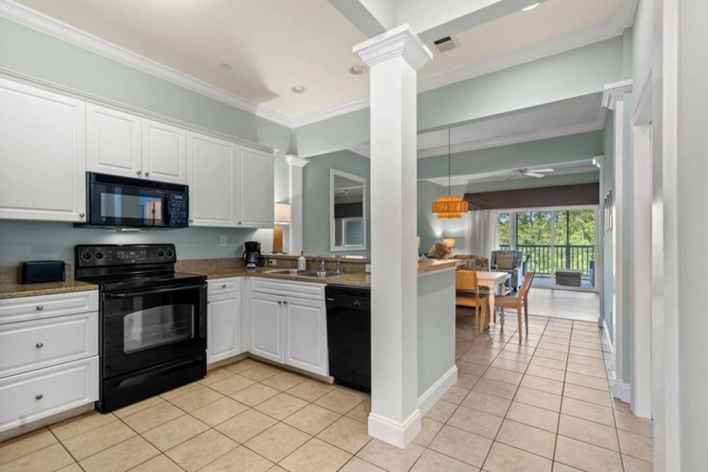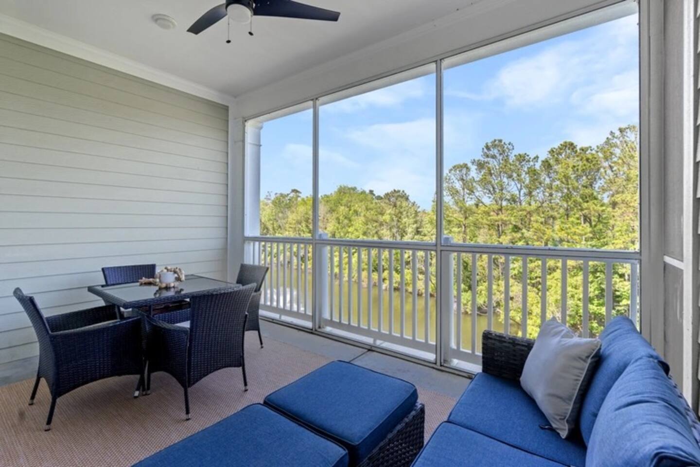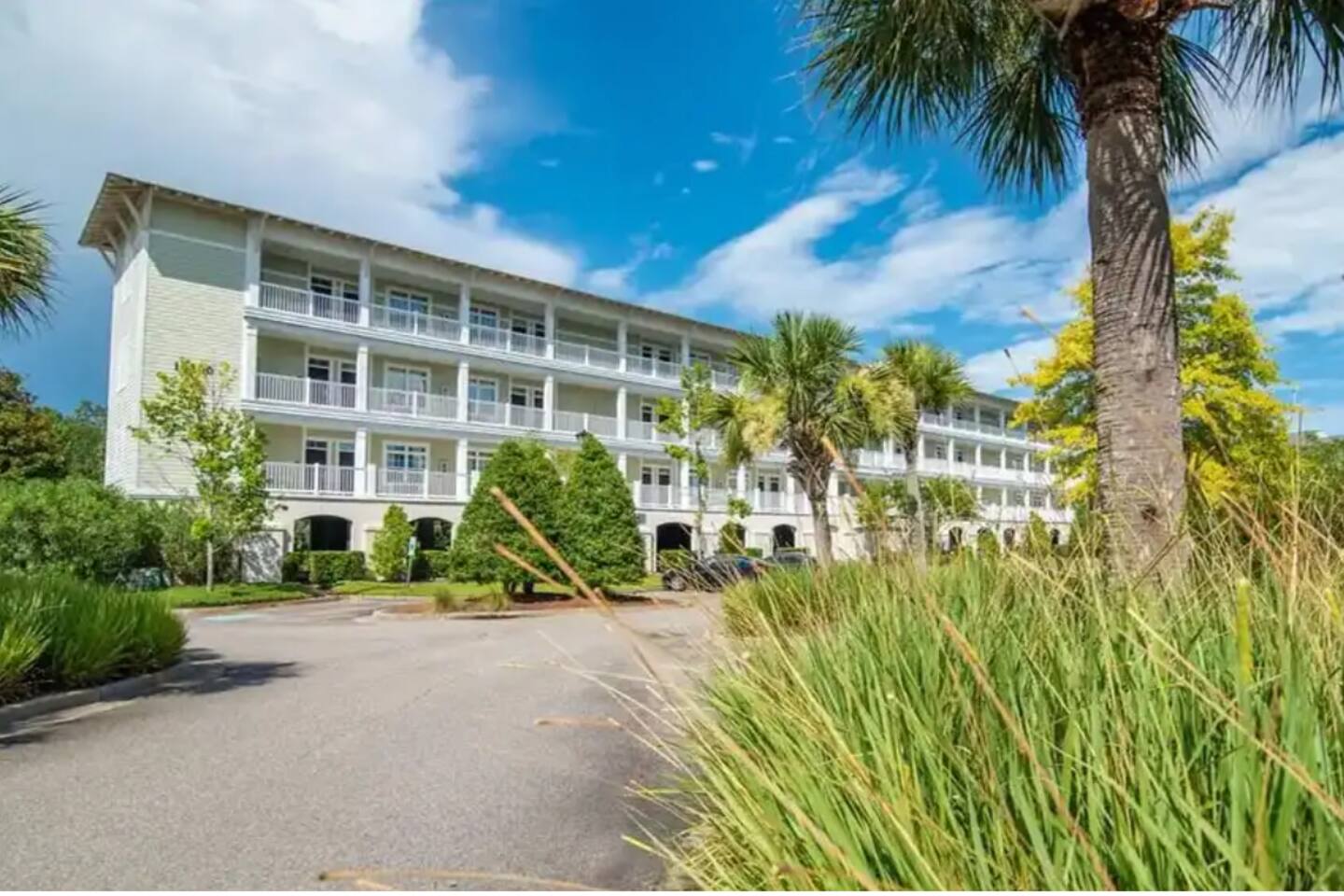 Key Features: **Private screened patio with a couch, table, chairs, and ceiling fan for relaxing with a book or enjoying a family meal overlooking a peaceful pond. **Six beach chairs, 8 beach towels, and all personal linens and sheets included. **Shared outdoor pool with lazy river, hot tub, splash pad, kids pool with submarine splash zone, kids playground, walking/biking paths, on-site restaurants such as Coastal Dish, the Deck, and Starbucks. **Private beach access a short 8-10 min walk or take the free shuttle in season near the pool. **Free reserved garage parking for one vehicle and outdoor parking for additional vehicles. **Two bedrooms each with 2 queen beds **Two full bathrooms each with a shower and tub **Fully equipped kitchen with dishwasher, microwave, toaster, blender **High-speed internet **AC/Heat **Washer and dryer in unit **Guests can charge their electric vehicles on the property with a shared EV charger. ☆☆BEDROOMS☆☆ This condo has 2 cozy bedrooms with comfortable mattresses and pillows. The primary bedroom has 2 queen size beds and an on-suite private bath. It also has a smart TV with access to your favorite streaming services, a closet with hangers, a nightstand with a reading lamp and a fan. The 2nd bedroom also has 2 queen beds and an on-suite private bath. It has a smart tv for your favorite streaming services, a nightstand with lamp, a closet with hangers, and a fan. Sheets, pillows, and comforters included. ☆☆ BATHROOMS ☆☆ Both bathrooms have a full tub/shower, shampoo, conditioner, shower gel, and all towels included. ☆☆ KITCHEN & LIVING AREA ☆☆ The open floor plan includes the living room with a flat screen smart TV to watch your favorite streaming services. The couch is a pullout sofa and sheets, blankets, and pillows are provided. The kitchen has all the comforts of home including cabinet space to store your groceries, a full-size refrigerator with ice maker (and ice trays), electric oven and stove, microwave, dishwasher, toaster, blender, Keurig with K-cup and 12 cup pot. Also included are pots, pans, baking dishes, cookie sheets, children's plates, cups and plasticware. The washer and dryer can also be found in the kitchen.