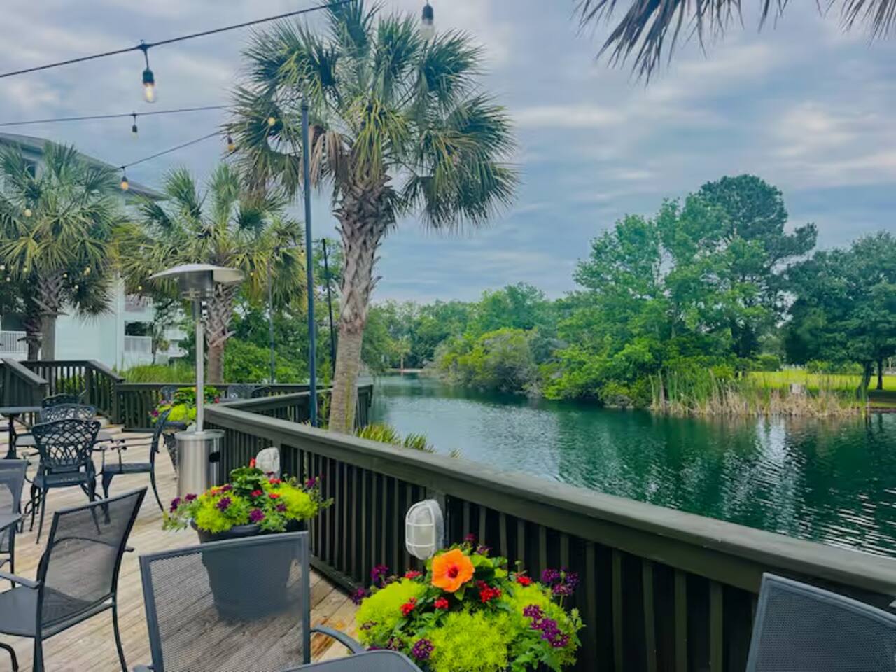 Unwind at our cozy family condo by the beach with a spacious living room, screened in porch, and fully stocked kitchen. This 2nd floor unit located at the Litchfield by the Sea Resort offers a private beach, outdoor pools, lazy river, hot tub, playground, walking/bike paths, tennis/pickleball courts, and a fishing pier. There's a restaurant/tiki bar and Starbucks on property. Beach shuttle (seasonally) is next to the pool, or walk the 8-10 minutes to the private beach access.
